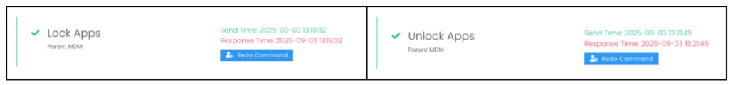 Lock & Unlock app: The command will be listed as “Parent MDM.”