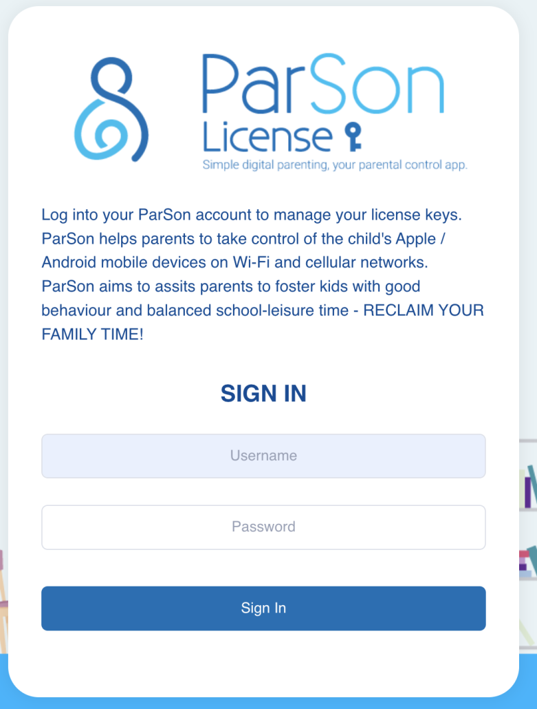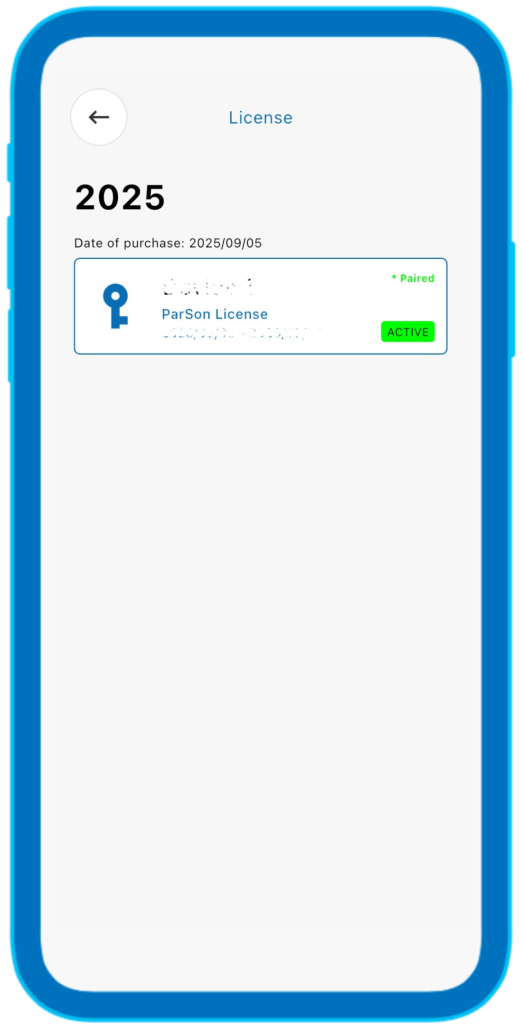 Website: go to parson license system website (https://payment.parson.cc/parson/license) > Login account
