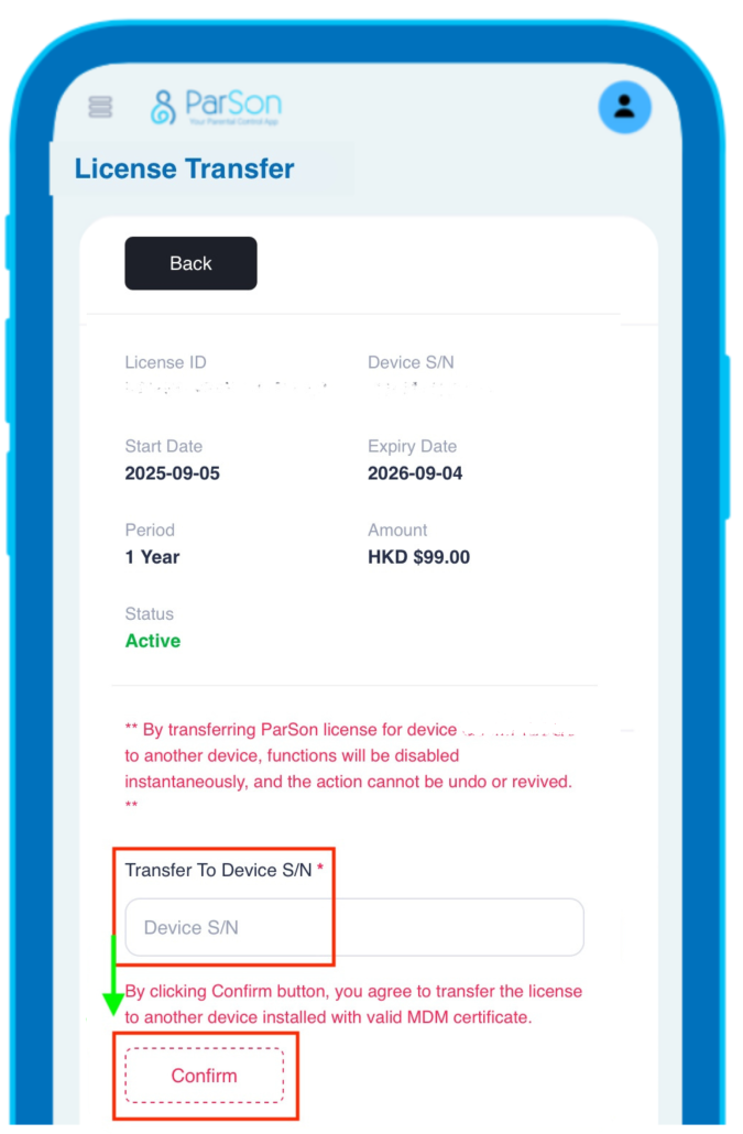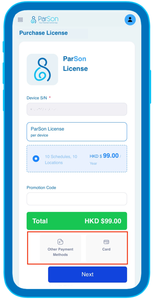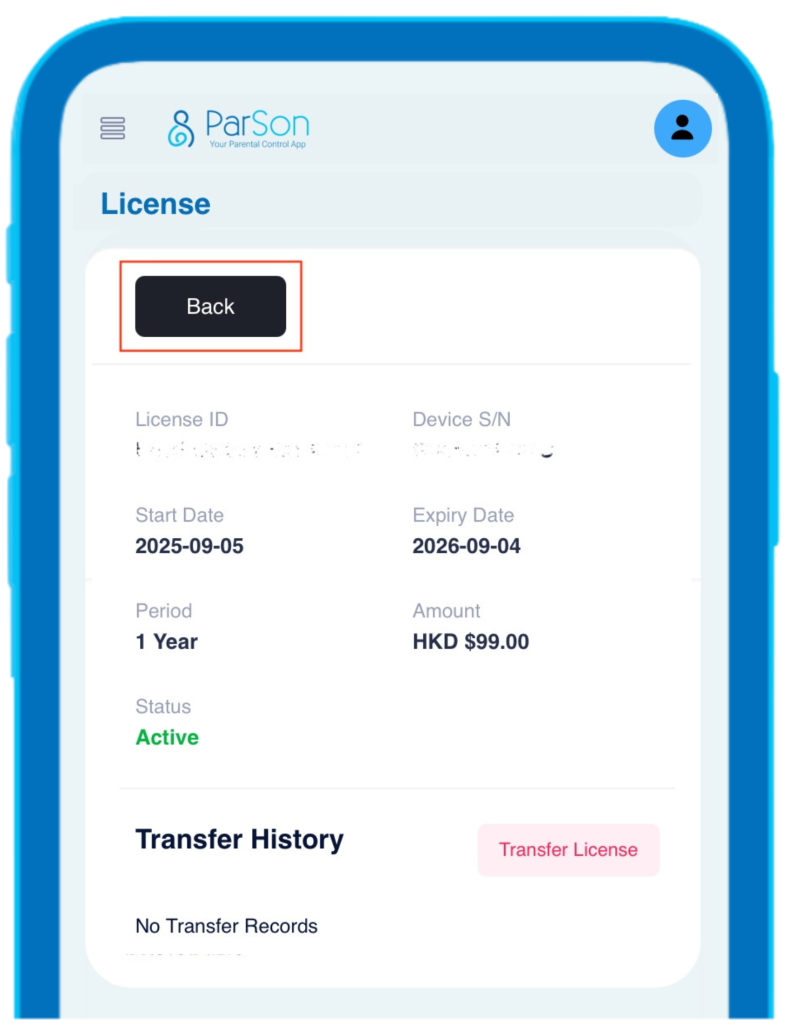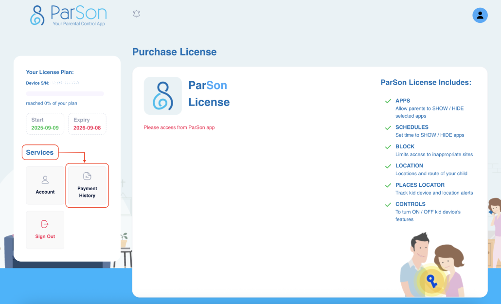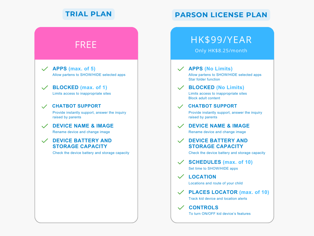 Users can enjoy all the value-added functions if they are using the ParSon License plan. For example, no restrictions and limitations on the function of showing or hiding App, blocking website and also the settings of star folder or schedule and location functions from the plan.