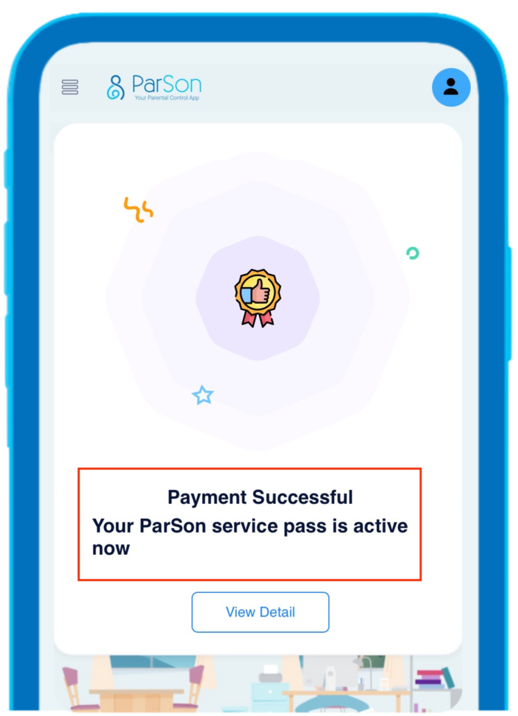 If you pay with credit card, the message “Payment Successful Your ParSon active pass is active now. ” will be displayed when the transaction is completed.