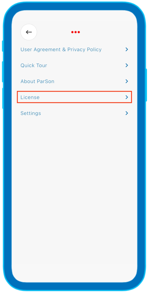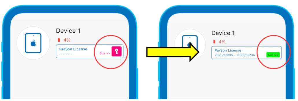 Please go to the menu > Press Parson License > Select the pink button with a key picture → process the payment