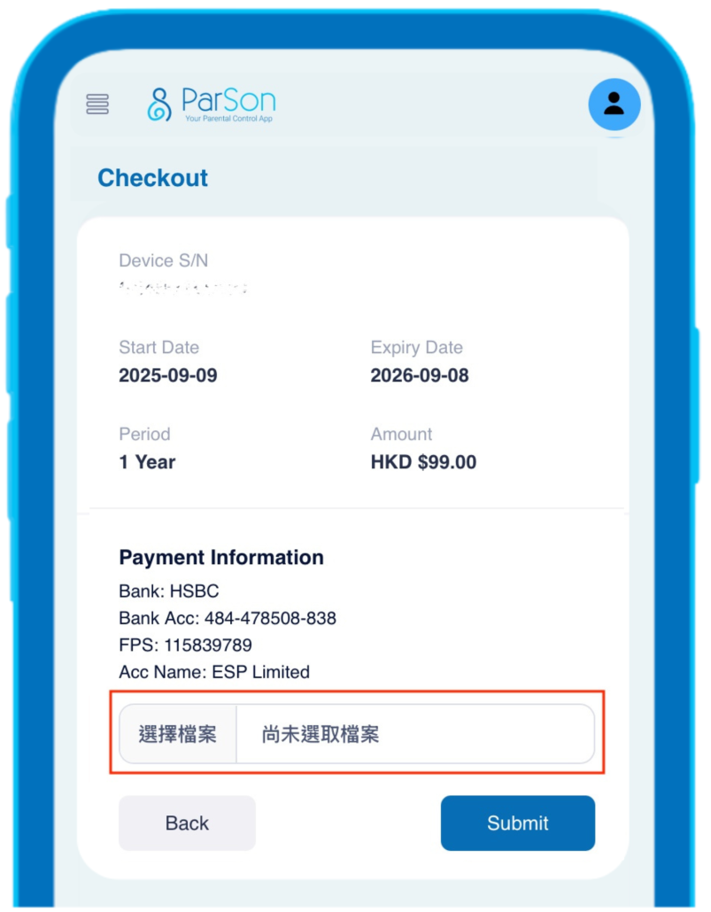 If you pay with FPS or bank transfer, the message “Upload successfully,your receipt has been uploaded. Your ParSon license will active within 48 hours upon the approval of your payment.” will be displayed. This means that the subscription is under review and waiting for approval.